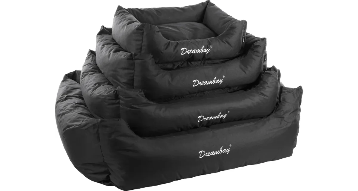 De hondenmand Dreambay Zwart is een zeer sterke mand met een waterafstotende hoes.