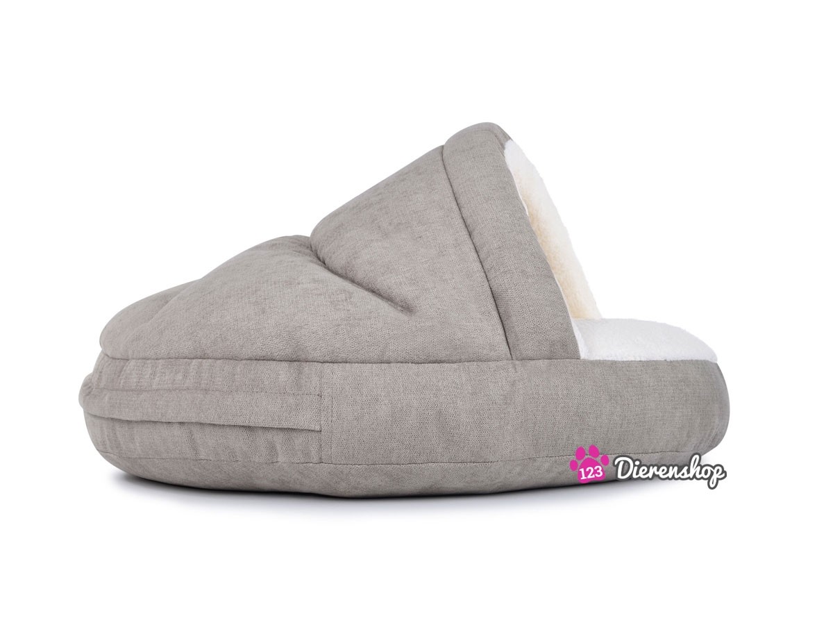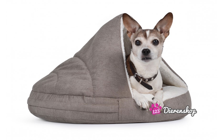 De luxe hondenmand Snuggle Cave ‘Taupe is het ideale plekje voor uw hond om lekker warm een dutje te doen.