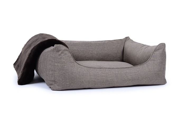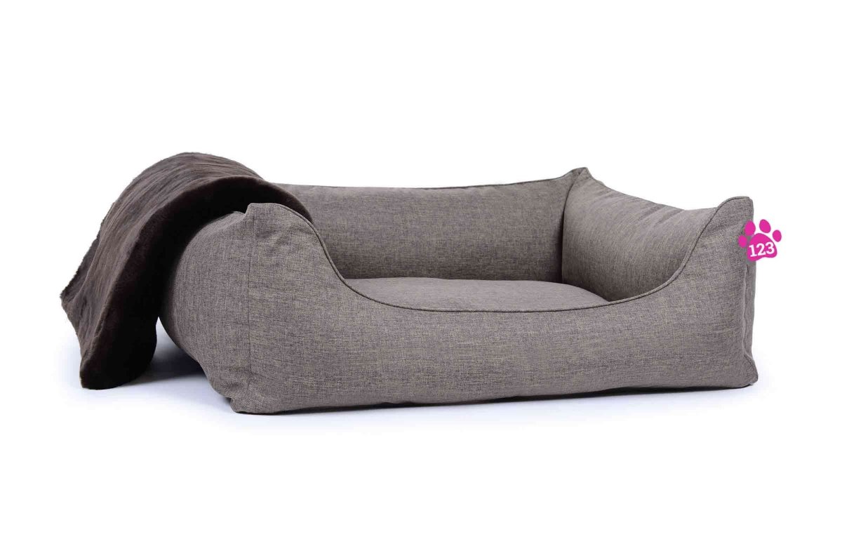De grijze hondenmand is leverbaar in drie maten en acht kleuren ( Zwart, Grijs, Crème, Zilver, Lichtbruin, Bruin, Pink en Violet )