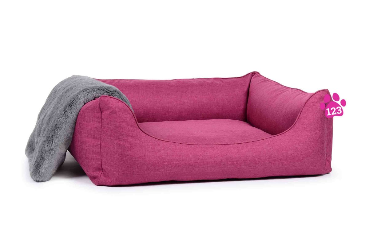De roze hondenmand is leverbaar in drie maten en acht kleuren ( Zwart, Grijs, Crème, Zilver, Lichtbruin, Bruin, Pink en Violet )