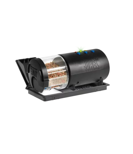 Alle aquariums welke met de High Lite technologie zijn voorzien, hebben een uitsparing voor de Juwel voederautomaat in de voorklep van de lichtkap.