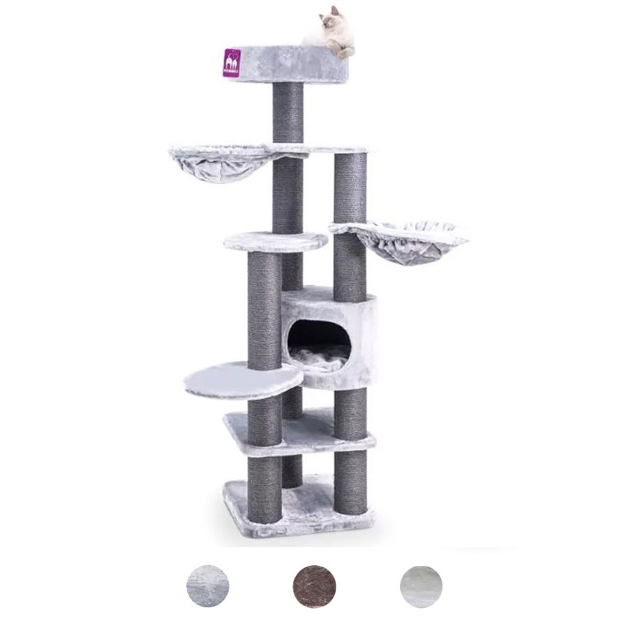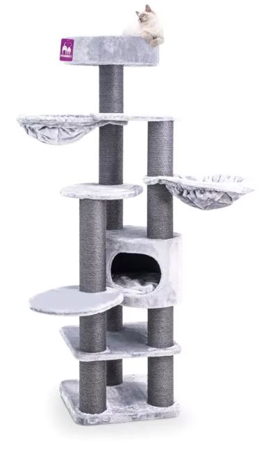 Krabmeubel Jane 175 is speciaal gemaakt voor grote katten en kattenrassen. Die hebben namelijk behoefte aan sterke en hoge krabstammen om aan te krabben en zich uit te strekken. Want daar worden ze blij van. Maar er is meer! Twee superzachte hangmatten, een fijn slaaphuisje en een grote zachte loungemand bovenop. Plek zat dus voor meerdere katten. En door de extra dikke bodemplaat is deze topper superstabiel.