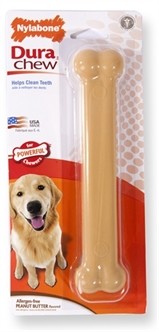 Nylabone Dura Chew Pindakaas hondenkluif is een 100% hypo-allergene kluif, geschikt voor volwassen honden tot 20 kg. met flinke kauwbehoeftes.