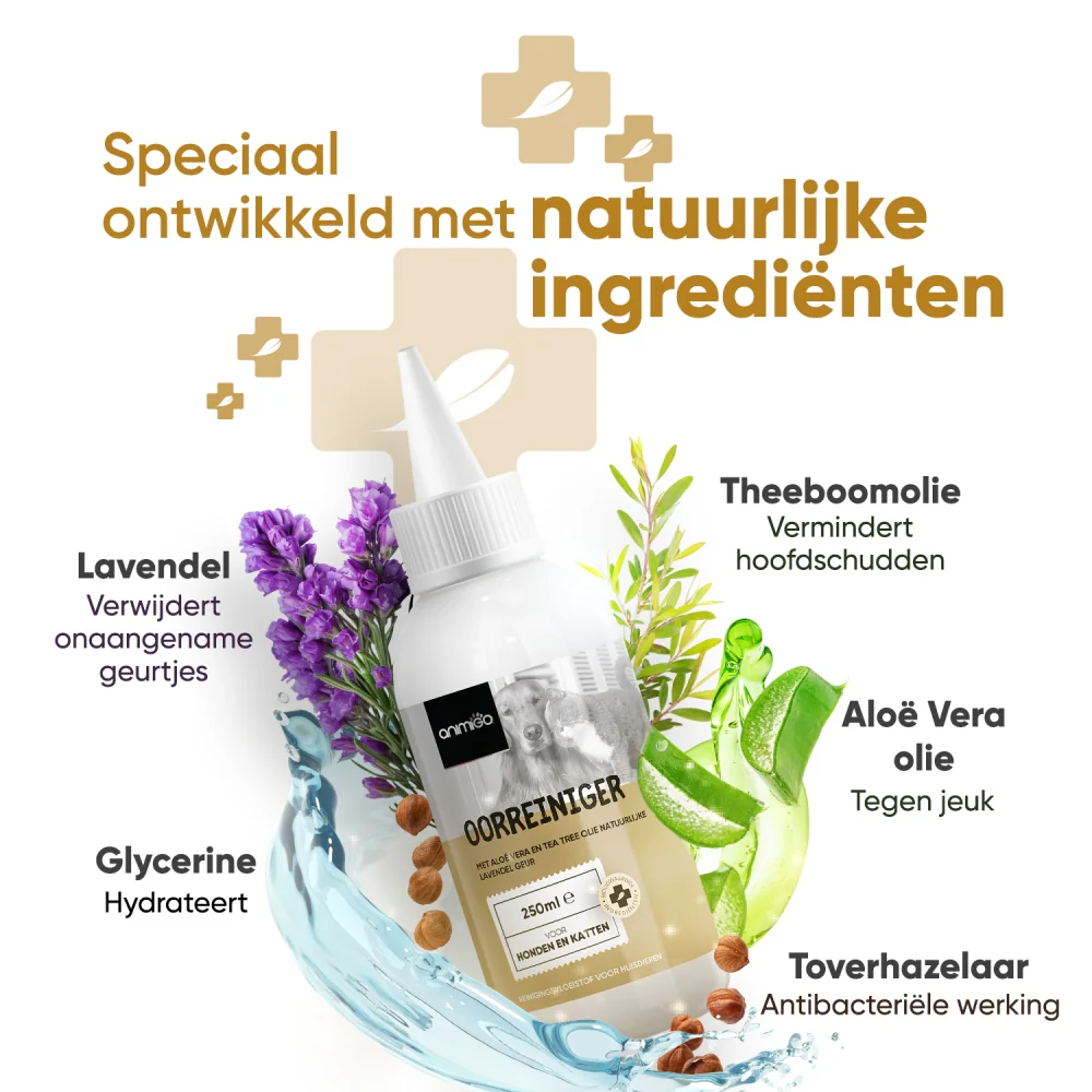 Omdat oorontstekingen een groot probleem bij honden en katten zijn, is oorhygiëne van vitaal belang voor hun gezondheid. Oorontstekingen bij huisdieren worden meestal veroorzaakt door bacteriën, gisten, allergieën of een hormonale onbalans, en er zijn een aantal dingen die deze kunnen bevorderen, zoals overmatig haar rond de gehoorgang of een opeenhoping van vuil en oorsmeer. Om de oren van je huisdier gezond te houden, is het belangrijk om ze altijd schoon te houden. De beste manier om dit te doen, is door een natuurlijke oorreiniger te gebruiken die oorsmeer oplost en vuil verwijdert.