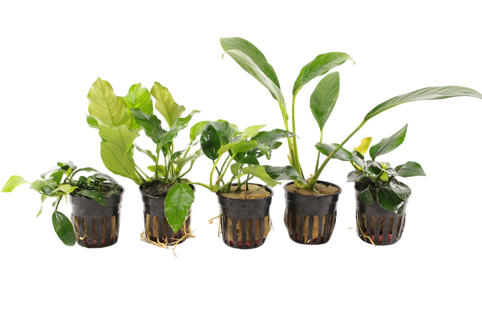 Anubias Aquariumplanten Mix is een pakket met 3 of 5 mooie Anubias aquariumplanten.