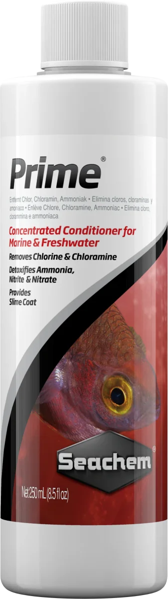 Seachem Prime is de nummer 1 waterconditioner wereldwijd en een essentieel product voor elk aquarium. Deze geconcentreerde formule neutraliseert chloor, chloramine en zware metalen, en detoxificeert ammoniak, nitriet én nitraat – alles in één fles. Prime is veilig, effectief en onmisbaar bij waterverversingen en noodsituaties.