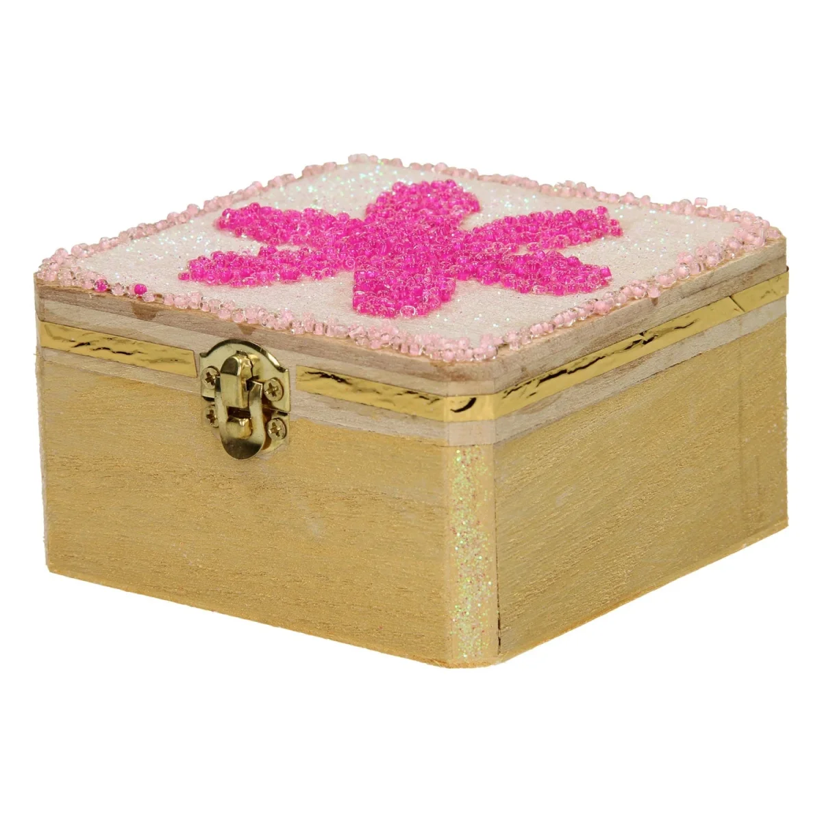 Het kistje heeft een goudkleurige sluiting.