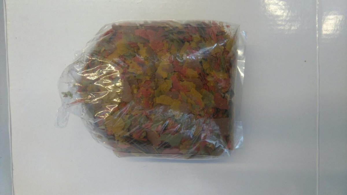 Voer is vervaardigd met gedroogde witvis, garnaal en vitamines